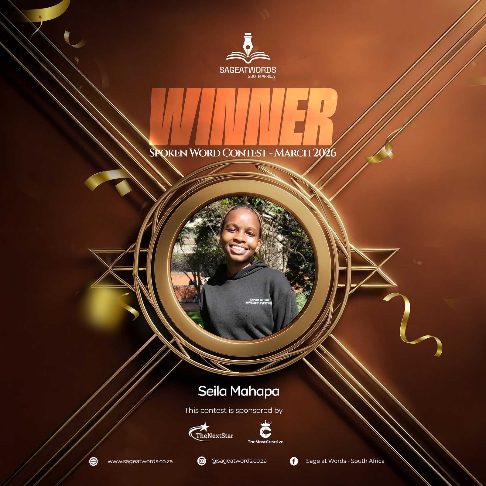 This competition is sponsored by TheNextStar and SageAtWords.